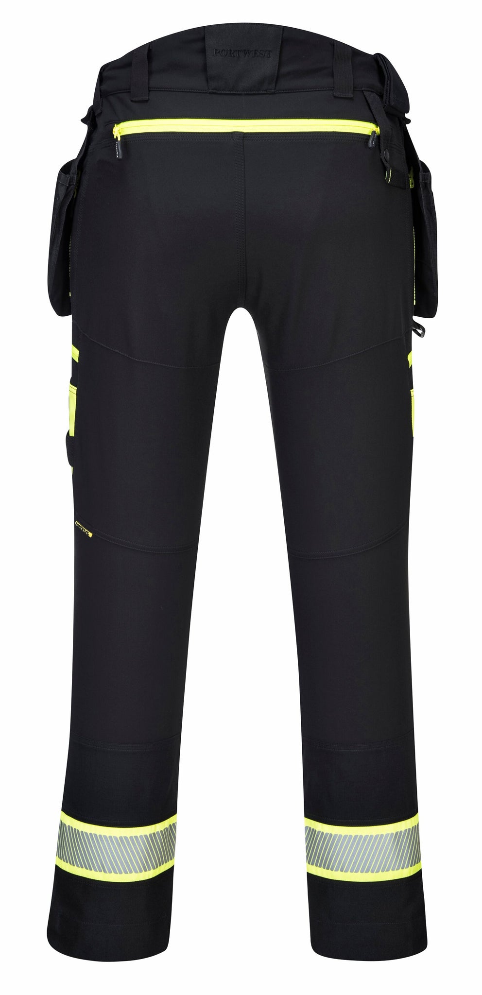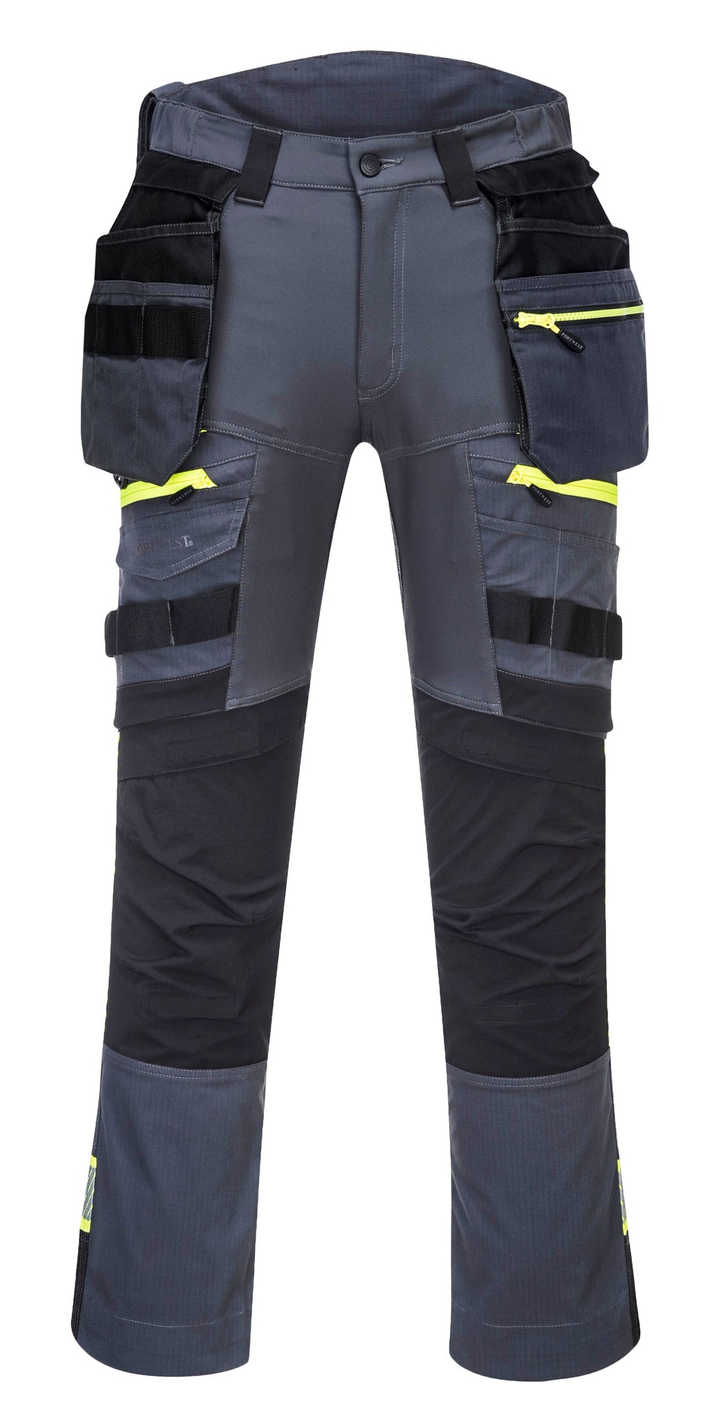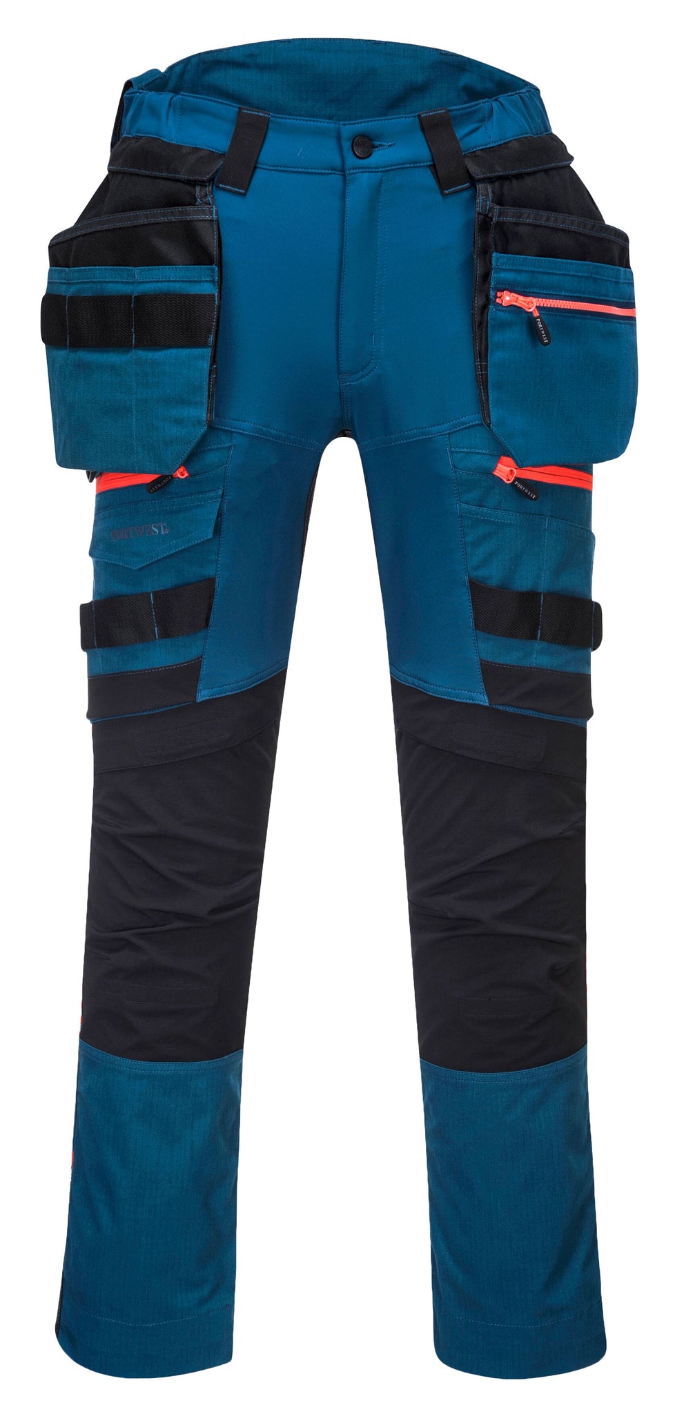 Il pantalone Holster DX4 è progettato ergonomicamente e realizzato con particolari tessuti elasticizzati 4X brevettati Portwest per offrire la massima libertà di movimento durante il lavoro. Il pantalone è caratterizzato da vita rialzata nella zona posteriore con elastico laterale, per garantire protezione in tutte le posizioni di lavoro. Tasche porta ginocchiere regolabili con apertura superiore preformate, ampie tasche frontali e tasche multifunzione con cerniera sulle gambe per riporre al sicuro telefono, penne e strumenti. Triple cuciture per la massima durata.