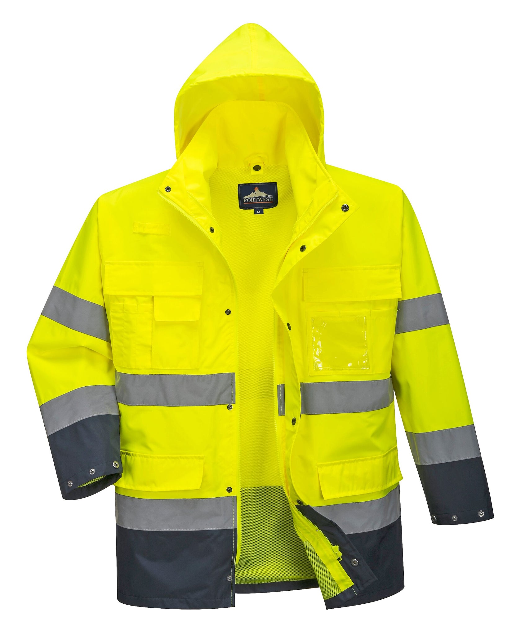 Questo inserimento 3 in 1 nella gamma Hi-Vis 150D Oxford ha un eccellente rapporto qualitàprezzo e fornisce una combinazione di suprema versatilità con un design innovativo. Completo di pratiche tasche multi-strato, chiusura a zip anteriore, cappuccio a scomparsa e una giacca in pile interna stand-alone staccabile.