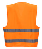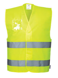 Un gilet classico ad alta visibilità con l'ulteriore vantaggio di avere un porta badge a doppio orientamento sul lato destro del torace.