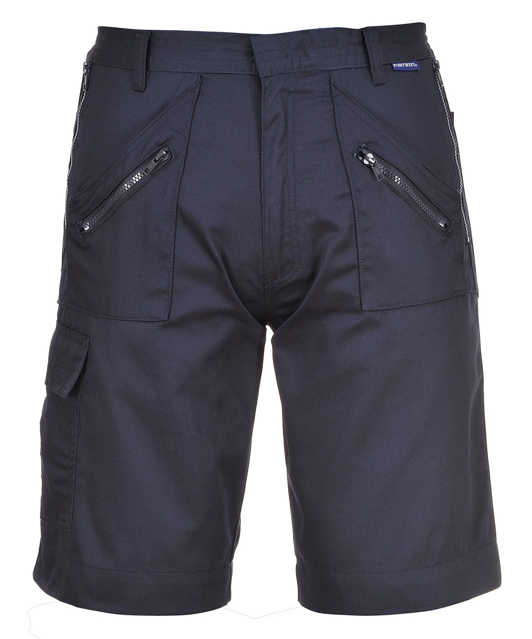 Pantaloni corti Action, ideali per qualunque tipo di ambiente lavorativo, offrono ampio spazio di custodia per i riporre al sicuro i propri oggetti personali mentre si lavora. Realizzati con doppie cuciture per favorirne la resistenza e la durabilità e con girovita elasticizzato nella parte posteriore per dare libertà di movimento.