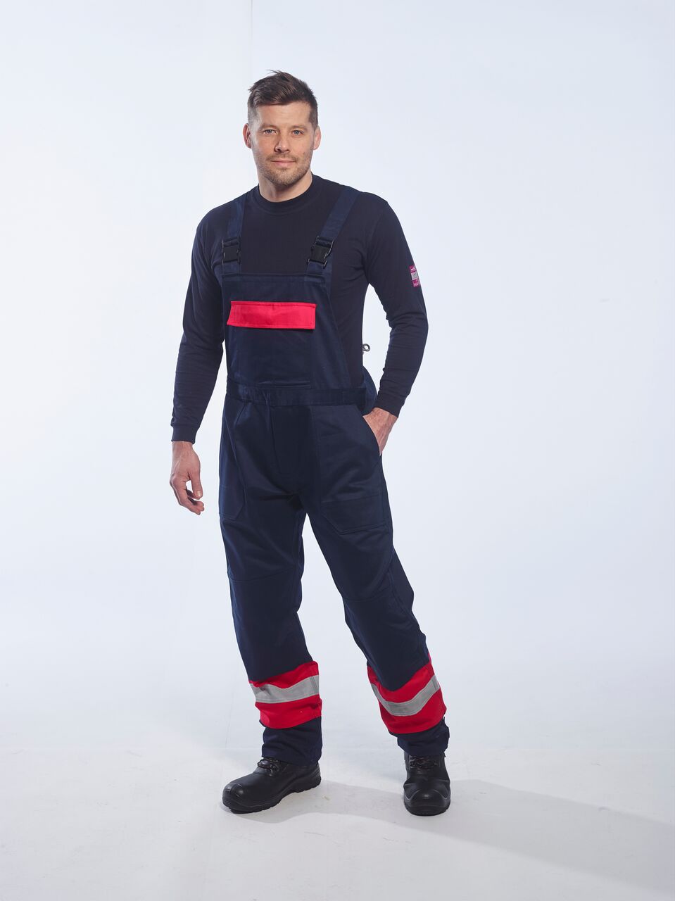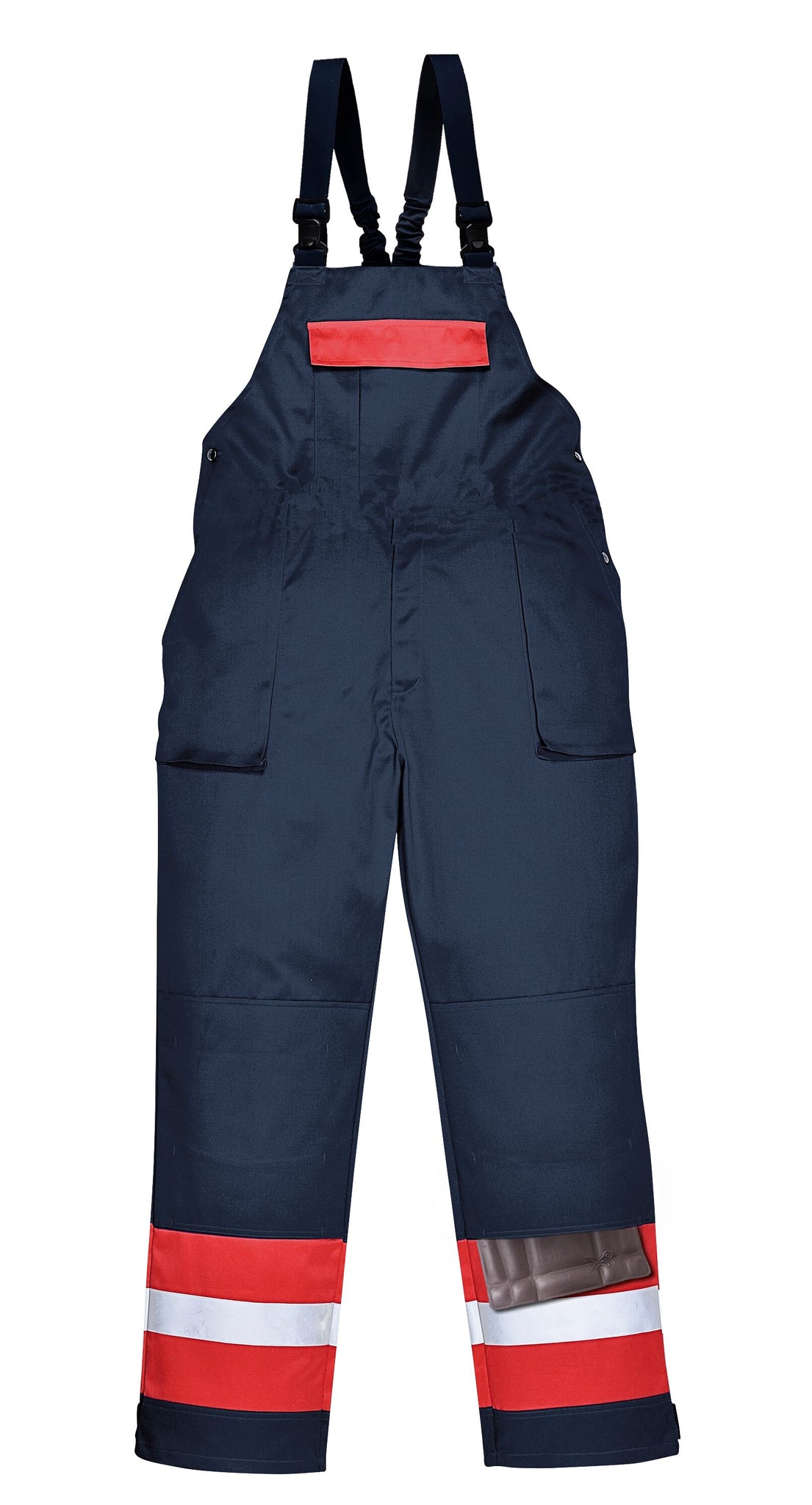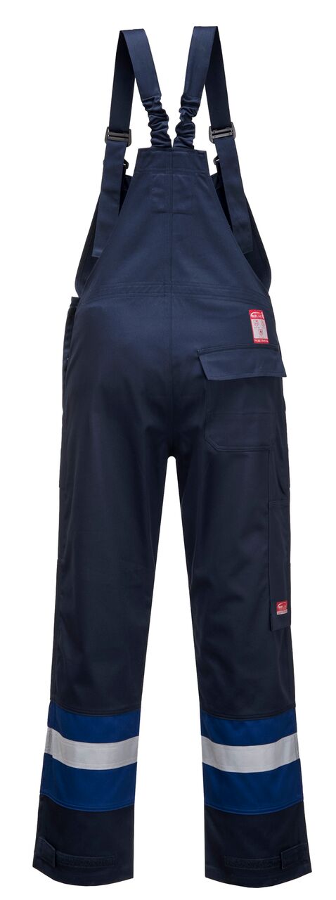 Questa salopette è prodotta con bande alta visibilità a doppia cucitura per migliorare la visibilità. Le caratteristiche includono triple cuciture, bande alta visibilità su gambe e corpo, due tasche frontali, una regolabile, una tasca sul petto, una sul retro con chiusura a bottoni e patta e apertura della caviglia regolabile.