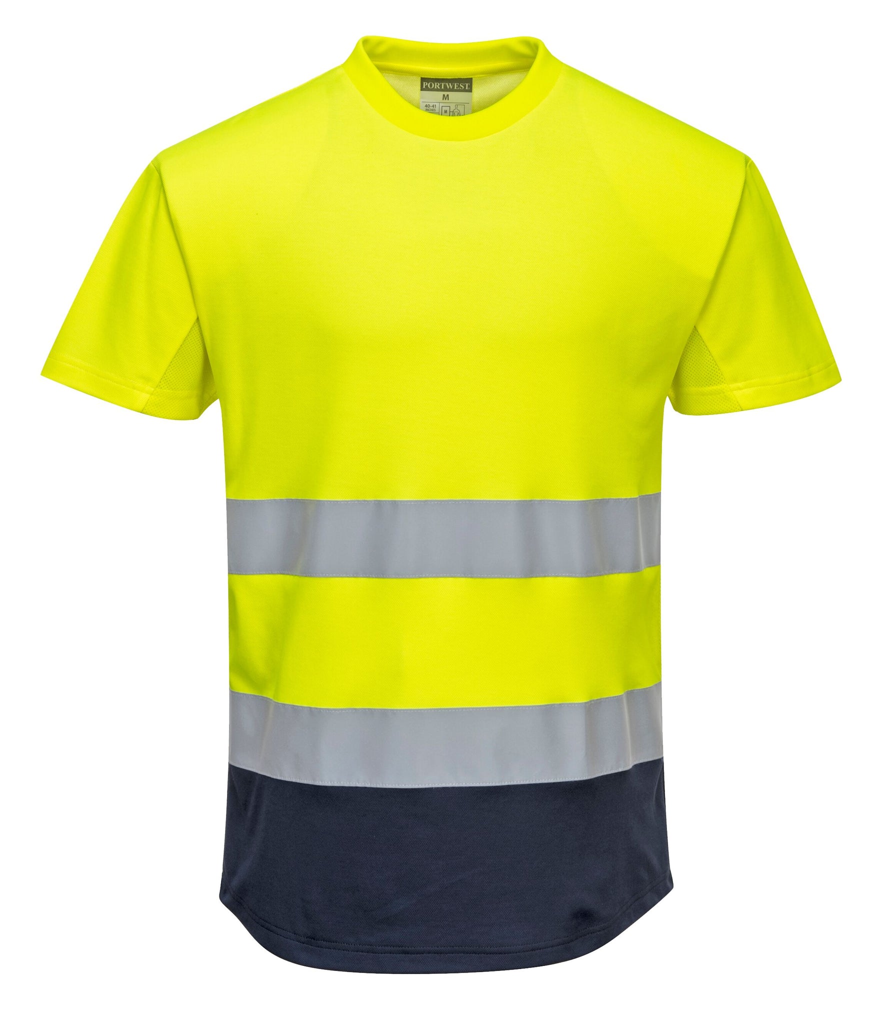 La t-shirt bicolore alta visibilità in mesh combina tessuto Cotton Comfort a inserti laterali Mesh traspiranti che consentono la circolazione dell'aria. Garantito per mantenere l'utilizzatore fresco e asciutto nelle giornate di lavoro più calde.