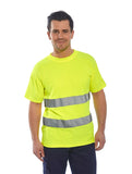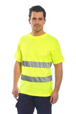 Questa T-shirt usa il nostro tessuto di cotone traspirante confortevole unito alla banda HiVisTex per una maggiore visibilità.